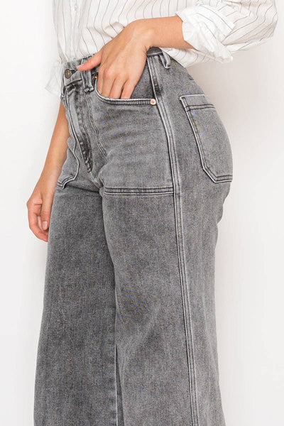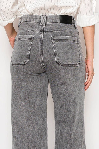 Meet The Perfect Palazzo – designed for ultimate comfort and modern style. These feature a relaxed, high-rise fit with a dramatic palazzo leg and wide hem. The subtle dart detail and fresh light grey wash make them a versatile, on-trend staple.