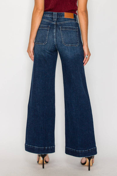 A-wide leg jean blends structure with comfort. The dark stone wash adds depth and versatility, making it easy to dress up or down. Finished with a wide leg opening, it offers a flattering, elongating effect that transitions seamlessly from day to night. Highlights: * High Rise A-Wide Leg Fit * Relaxed Silhouette with Structured Finish